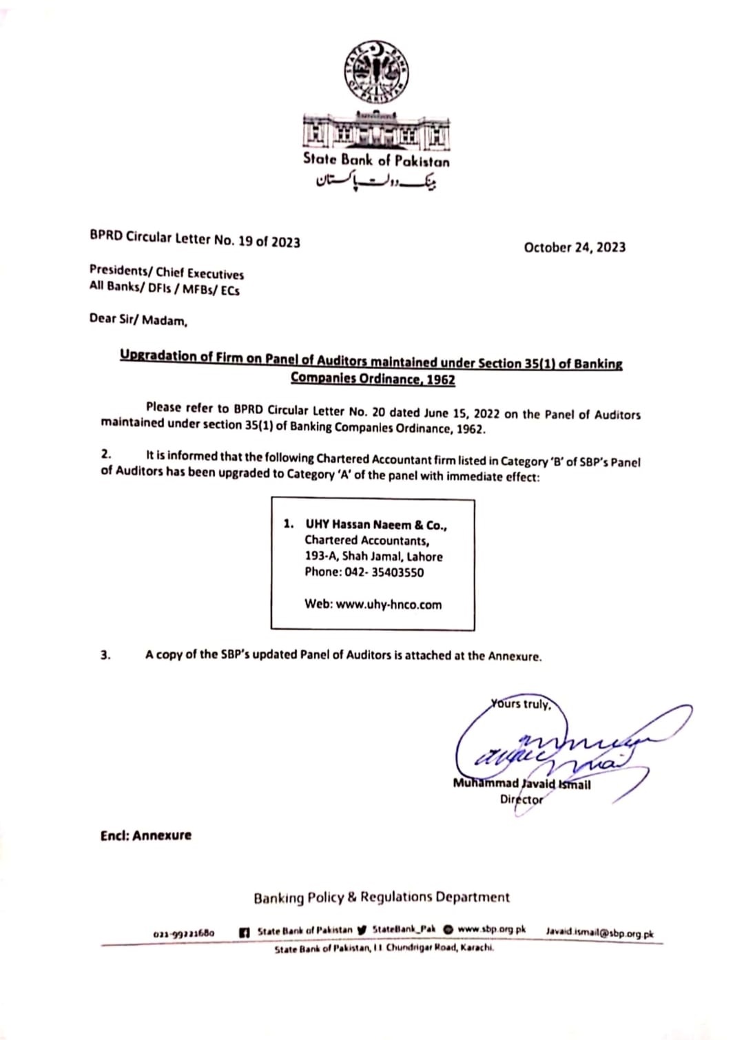 Auditor(UHY HASSAN NAEEM & CO.) Rating